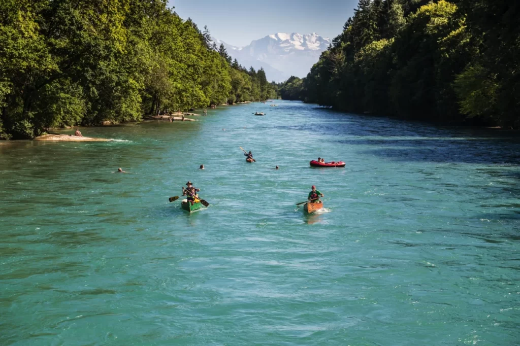 У Мюзінгена та Мурі можна буде зупинитися, щоб викупатися, хоча висадка на сушу можлива лише у Мурі. Потім, пройшовши зоопарк Дельхельцлі та знаменитий бернський відкритий басейн Марцилі ліворуч, ви нарешті зможете зійти на берег. І коли прямо перед вами раптом зросте будівля Бундесхауса (федерального парламенту), знайте, що ви вже у Берні!